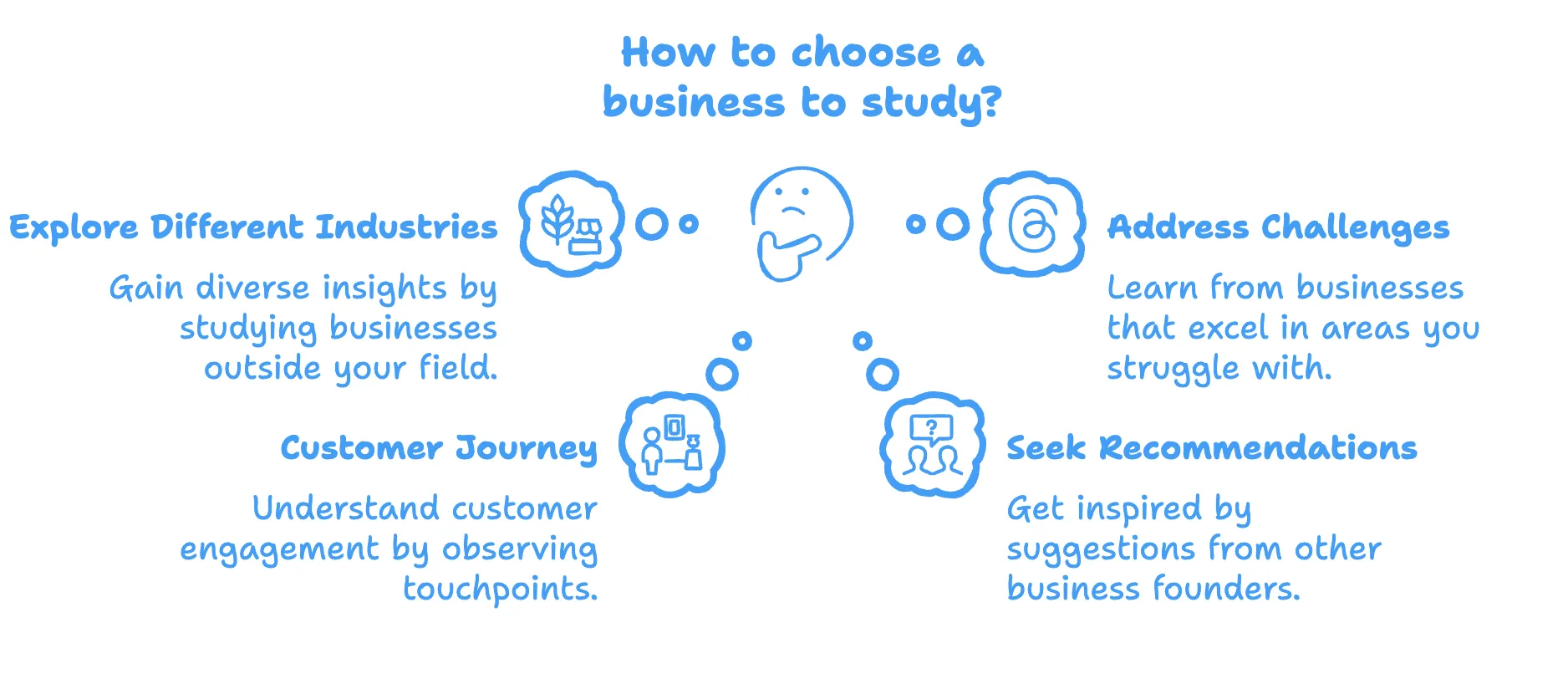 - Think about your biggest challenge: Need better marketing? Study a brand that excels at storytelling. Struggling with team efficiency? Find a business with seamless operations.